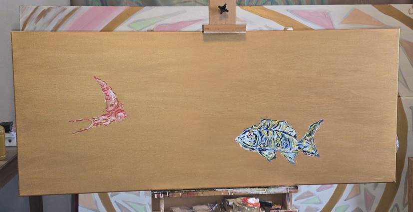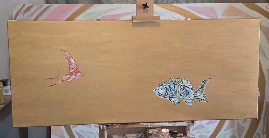Auf dem Weg Acryl auf Leinwand 400 x 150 entstanden in der Atelierwerkstatt